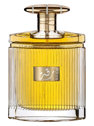 Riqqa by Ard Al Zaafaran is a Oriental fragrance for women and men. Riqqa was launched in 2023. Top notes are Cinnamon, Nutmeg and Bergamot; middle notes are Praline, Dates, Tuberose and Lily; base notes are Tonka Bean, Vanilla, Agarwood, Benzoin and Myrrh. Riqqa by Ard Al Zaafaran is an oriental fragrance that blends warm spices, sweet gourmand elements, and woody depth. The composition opens with invigorating cinnamon, bergamot, and nutmeg, transitioning to a heart of dates, praline, and floral tuberose. Its base combines creamy vanilla with resinous benzoin and agarwood, creating a sophisticated balance between sweetness and earthy complexity. The fragrance is presented in an ornate bottle reflecting Middle Eastern luxury aesthetics.